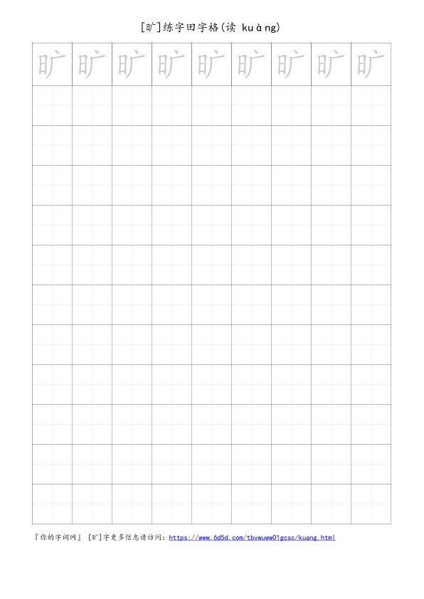 旷练字田字格旷的田字格笔顺PDF文件下载